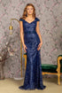 3-D Flower Glitter Sheer Neckline Mesh Mermaid Long Dress